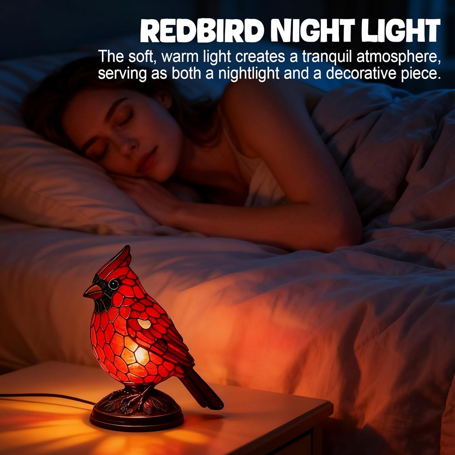 This red bird night light fits effortlessly into bedrooms, living rooms, and bedside spaces, offering a gentle, calming glow that enhances everyday comfort and also works beautifully for Christmas, holidays, or family gatherings