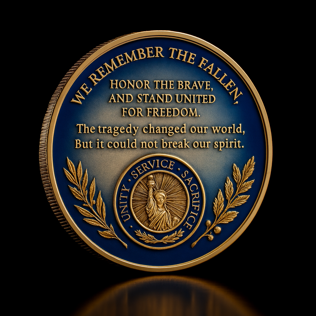 Marking one of the most pivotal moments in modern history, this beautifully crafted coin honors the courage, sacrifice, and unity shown on September 11, 2001. Featuring the iconic Twin Towers and American flag on the front, and a message of resilience on the back, it’s a tribute that will be cherished for generations.